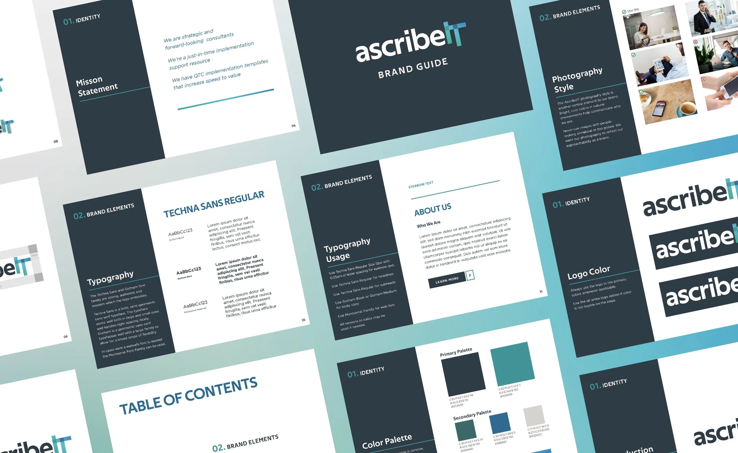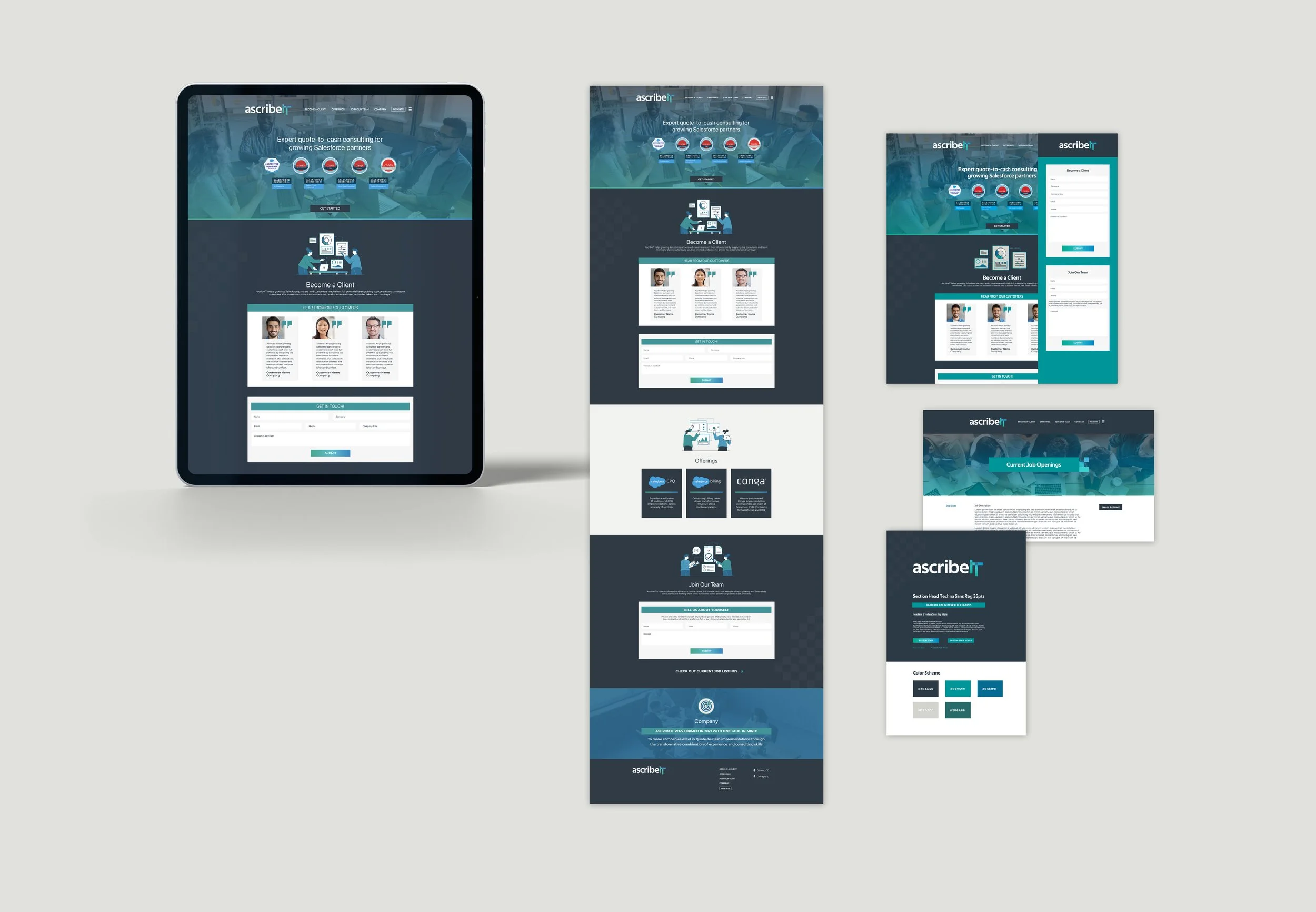 AscribeIT helps discrete manufacturers modernize revenue operations and CPQ systems, with performance measured directly against critical business KPIs. As a newly launched company they came to us to create a brand identity, brand guide and brand identity package to use as the company grows and works on building a professional, high standard business. As the branding project wrapped up AscribeIT came to us to also work on their website design and presentation deck.
