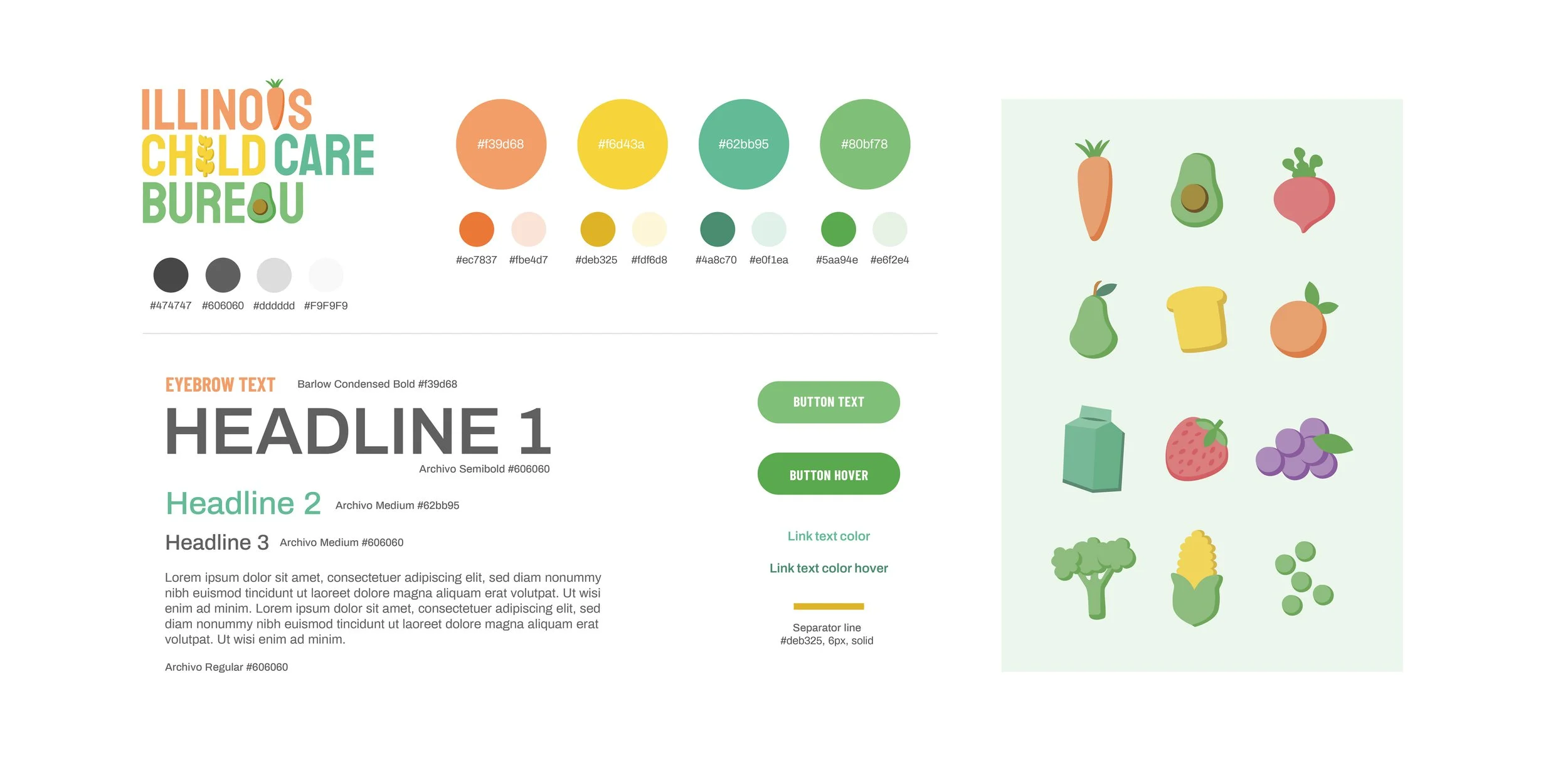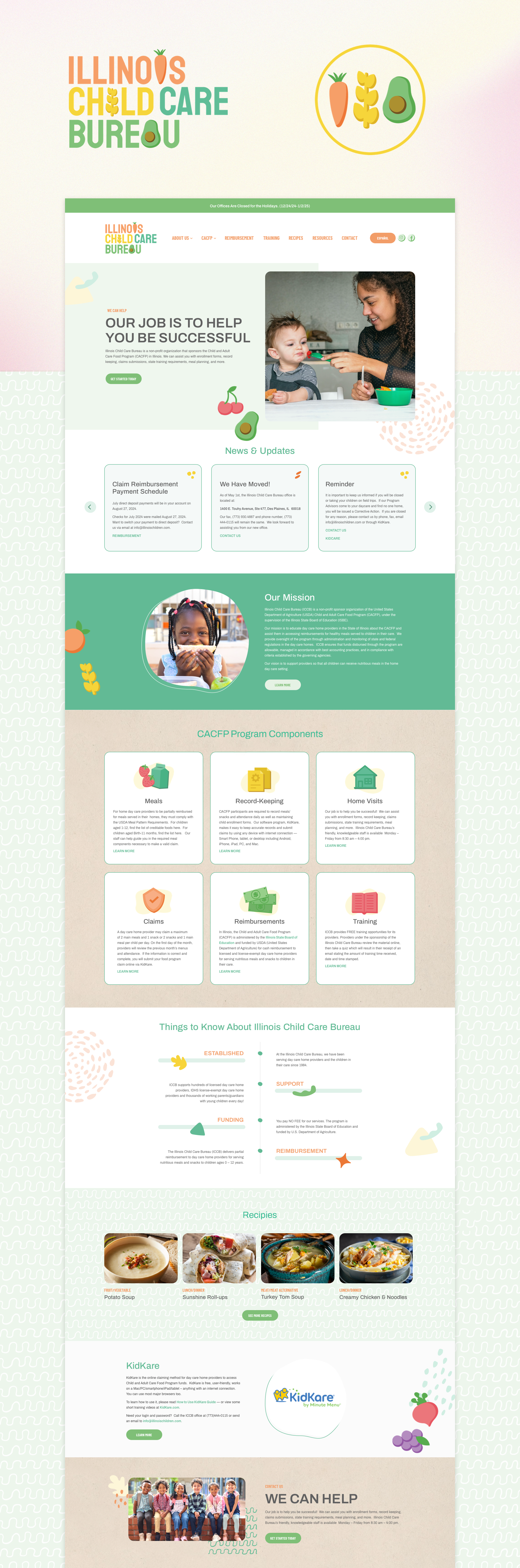 The Illinois Child Care Bureau works with day care home providers in Illinois to provide partial reimbursement for healthy meals and snacks served to children in their care. We worked with their team to rebrand their company and design their new website to cater more to their specific audience. We made sure the new branding incorporated the fun energetic vibe of daycare providers, while also maintaining the professionalism of the organization.